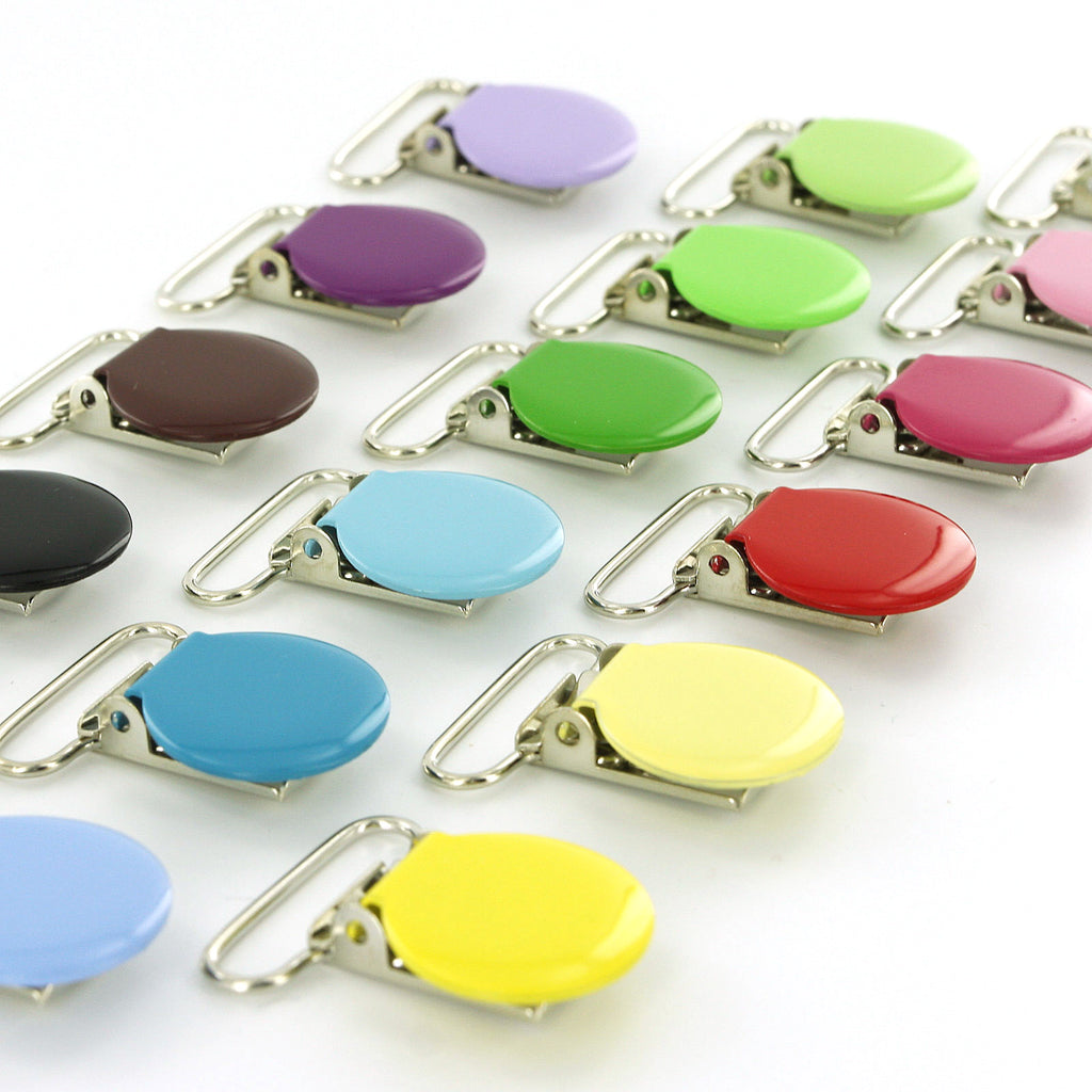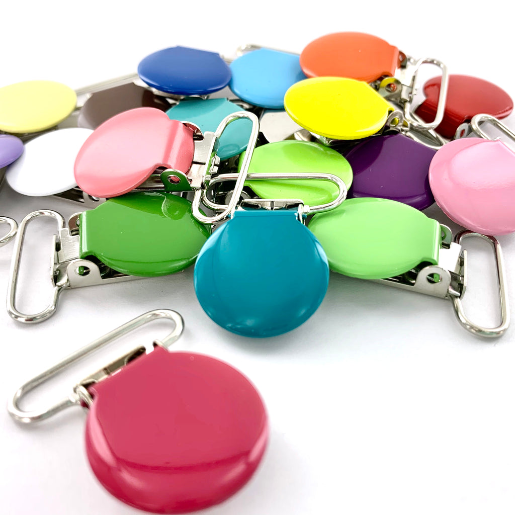 (Random Mix) Enamel 1" (25 mm) Round Metal Pacifier Clips (Lead and Nickel Free)