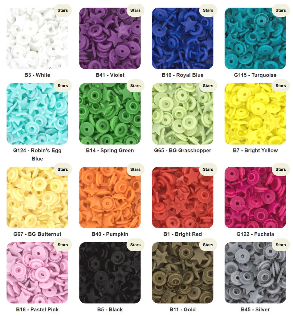 - Make your stars go twice as far by adding matching round snaps! Just order the same color/quantity of round snaps and they will go twice as far.