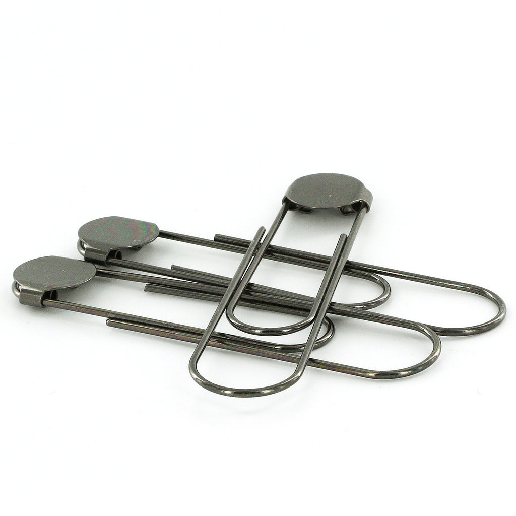 Gunmetal-toned 3 1/2 Inch (8.9 cm) Paper Clips with Glue Pads (5/8" - 16 mm pad diameter)