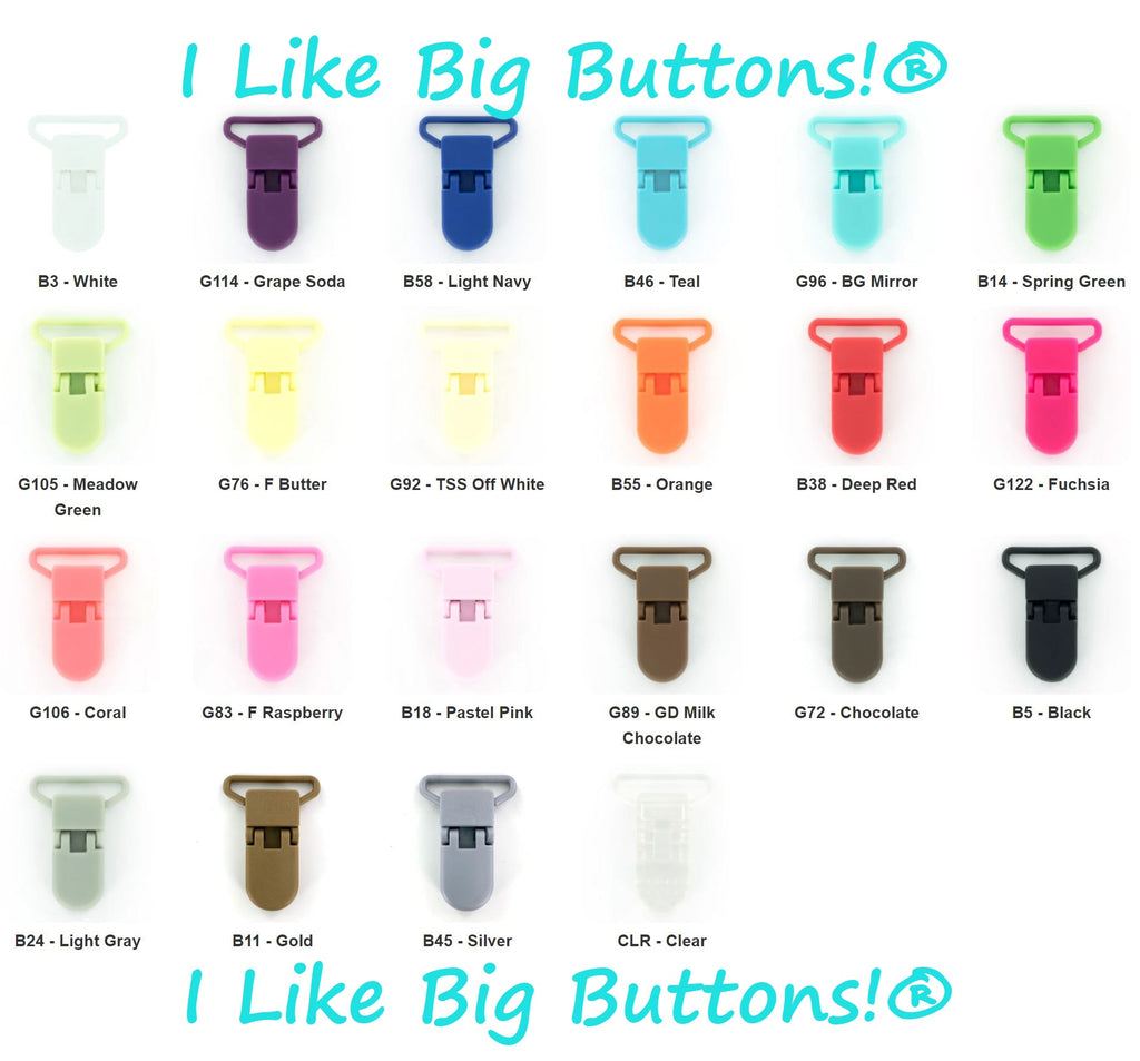 Pacifier clips are great for making pacifier holders, bib clips, toy holders, and various other ribbon or sewing crafts. They have grabbing teeth that secure tightly. 3/8 inch to 7/8 inch ribbon is frequently used, but they can hold ribbon up to 1 inch wide.