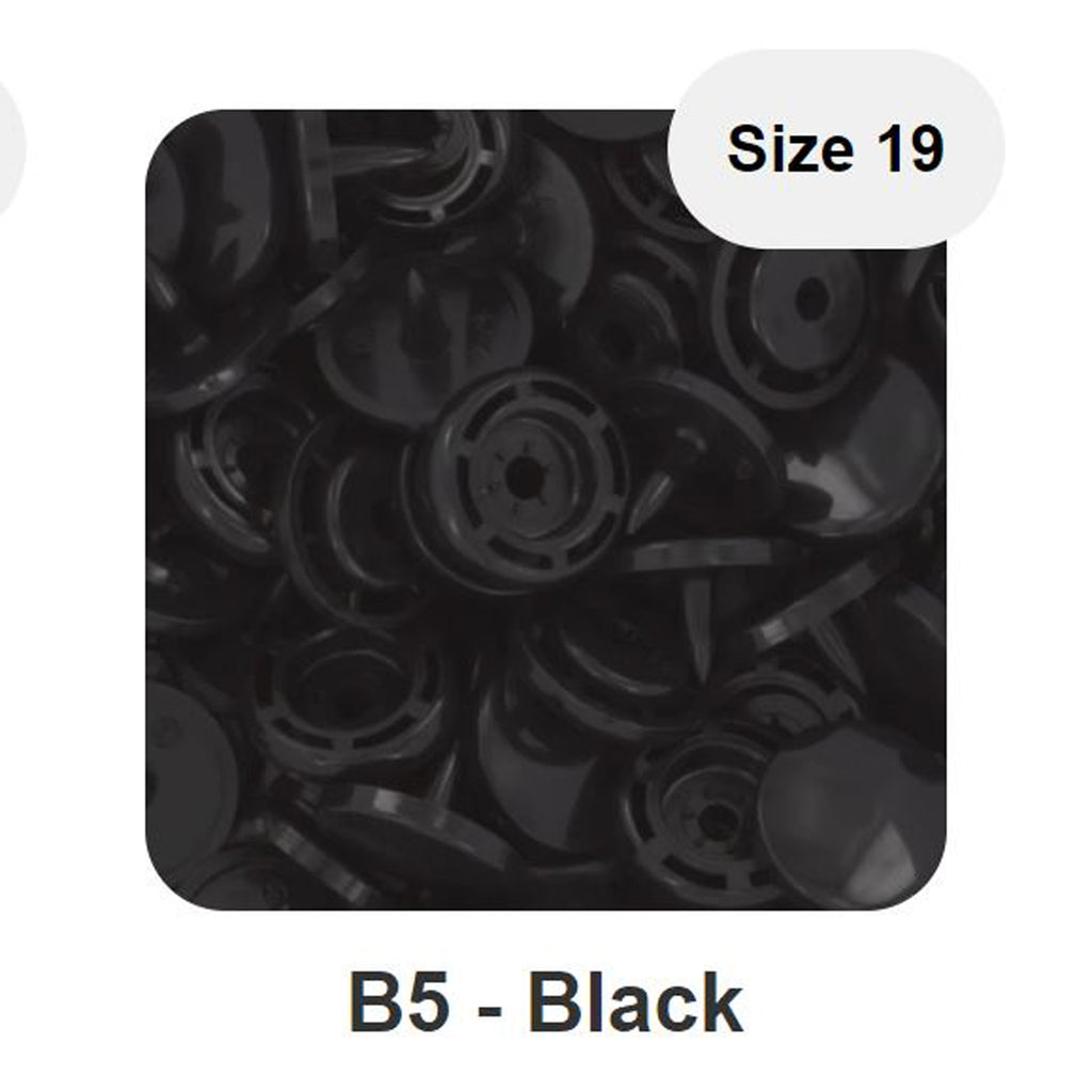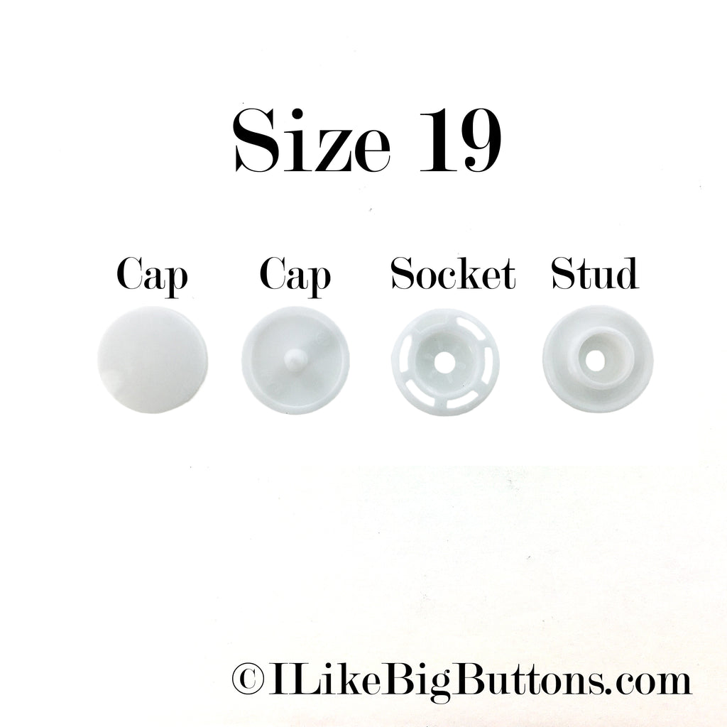 Size 19 snaps are available in 2 colors: B3 (White) and B5 (Black).