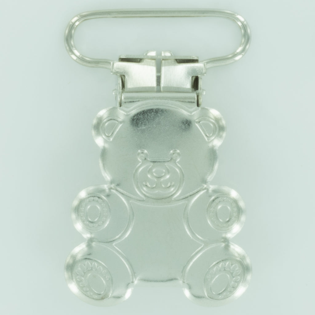 Teddy Bear Shaped Metal Clips are great for making pacifier holders, bib clips, toy holders, and various other ribbon or sewing crafts. They have grabbing teeth that secure tightly. 3/8 inch to 7/8 inch ribbon is frequently used, but they can hold ribbon up to 1 inch wide.