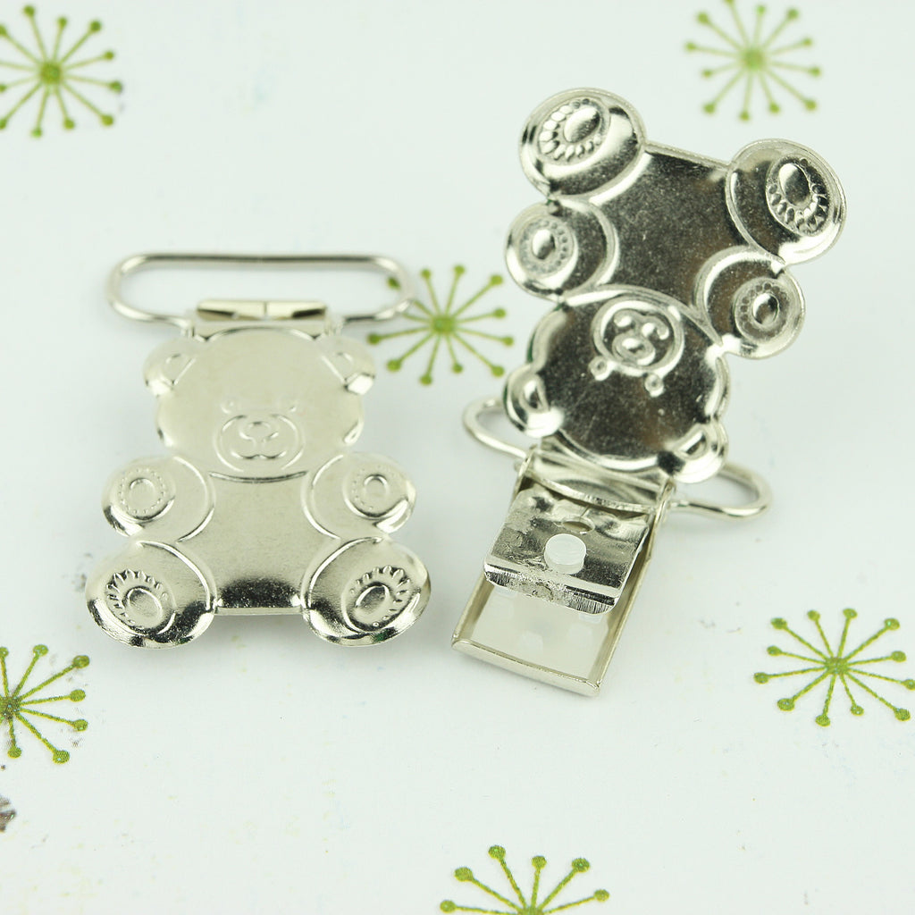 1" (25 mm) Teddy Bear Shaped Metal Pacifier Clips (Lead and Nickel Free)